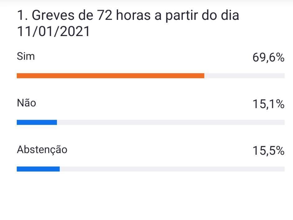 Os trabalhadores aprovaram uma paralisação de 72 horas, a parir do dia 11/01/2020.