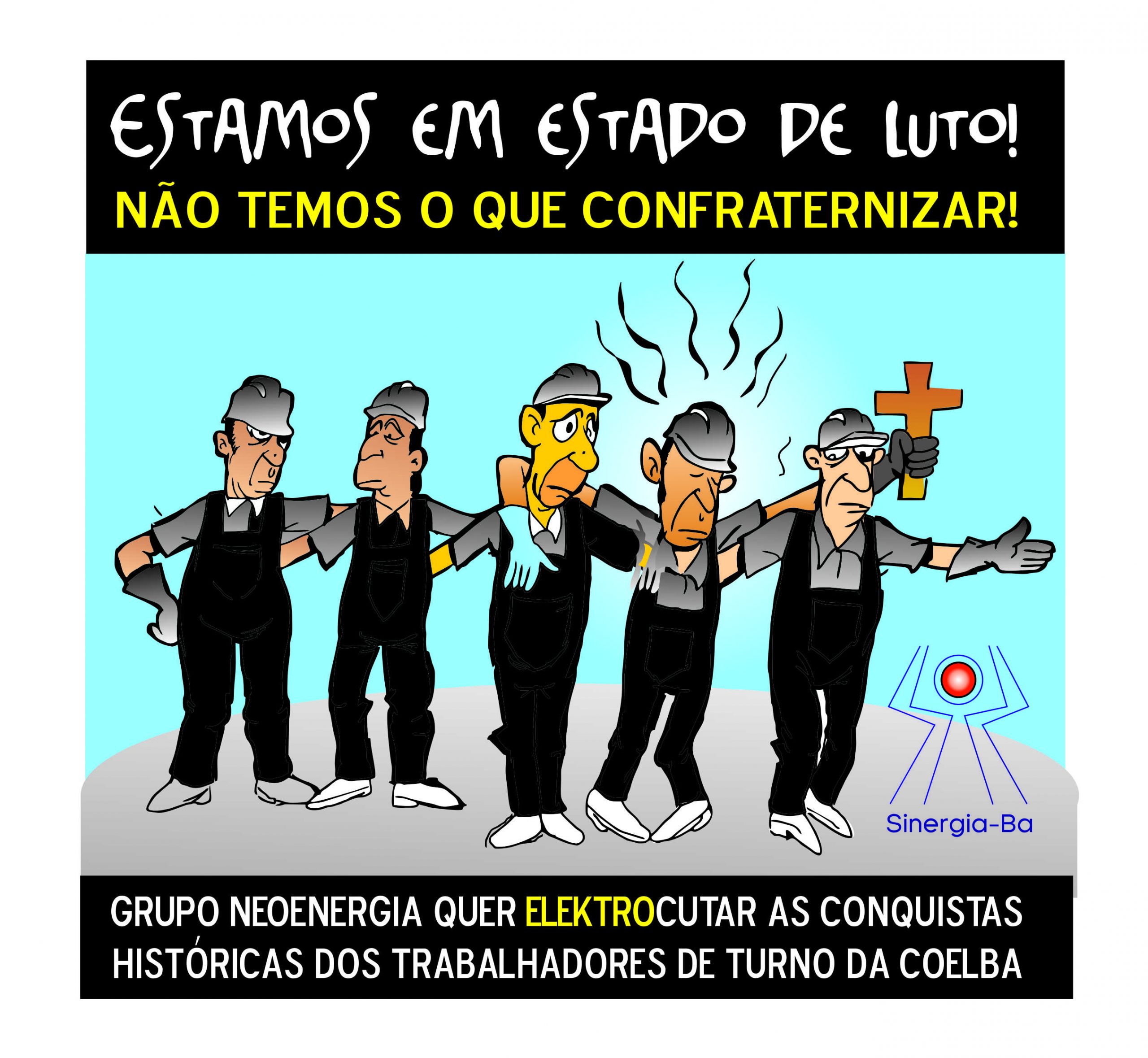 Os trabalhadores de turno da Coelba seguem sofrendo ameaças de retirada de direitos. Insatisfeitos com essa situação e com as constantes situações criadas pela Superintendência, decidiram deflagar o “Estado de Luto! Não temos o que confraternizar!”, que faz uma menção a todo processo que estão passando e a tentativa da empresa em querer confraternizar neste fim de ano, mesmo diante desse descaso.