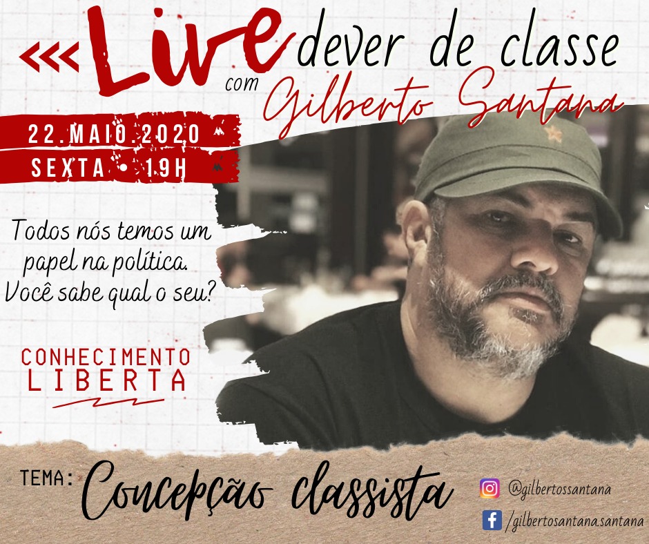 Neste momento de quarentena aprofundar os nossos conhecimentos é uma ótima opção. Nesse sentido, nosso grande companheiro Gilberto Santana promoverá nesta sexta, 22, uma Live abordando a “Concepção Classista”. Esta é primeira de uma série de discussões que o nosso cientista político vai realizar. A ideia é expandirmos esses debates com outros dirigentes e convidados.