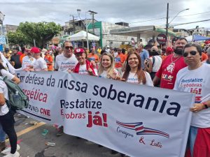 O Sinergia, ao lado de diversas entidades do setor elétrico nacional, participou do tradicional cortejo que levou milhares de pessoas para as ruas de Salvador. Com cartazes, faixas, bandeiras e panfletos, realizamos um grande Ato político em defesa da reestatização da Eletrobras, chamando a atenção da sociedade e dos inúmeros representantes públicos presentes no evento.